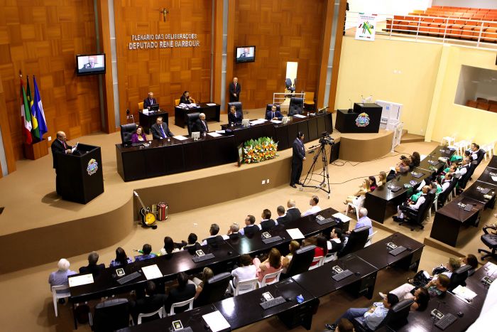 Exemplo: Os deputados participaram da sessão na Assembleia Legislativa.